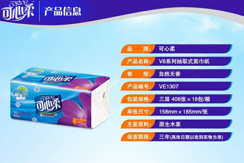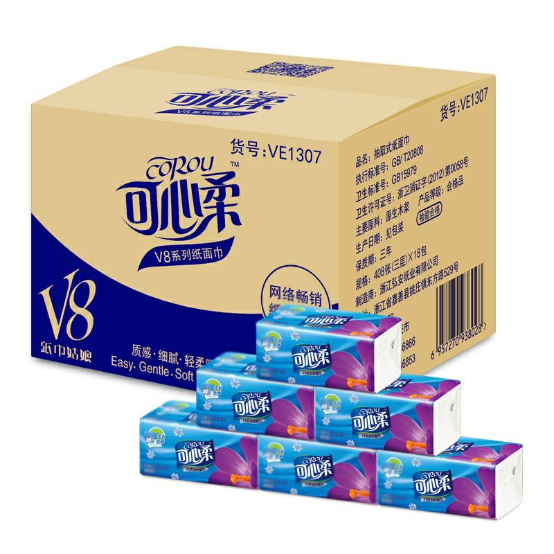 可心柔 V8系列CoRou云柔系列白色木浆110抽